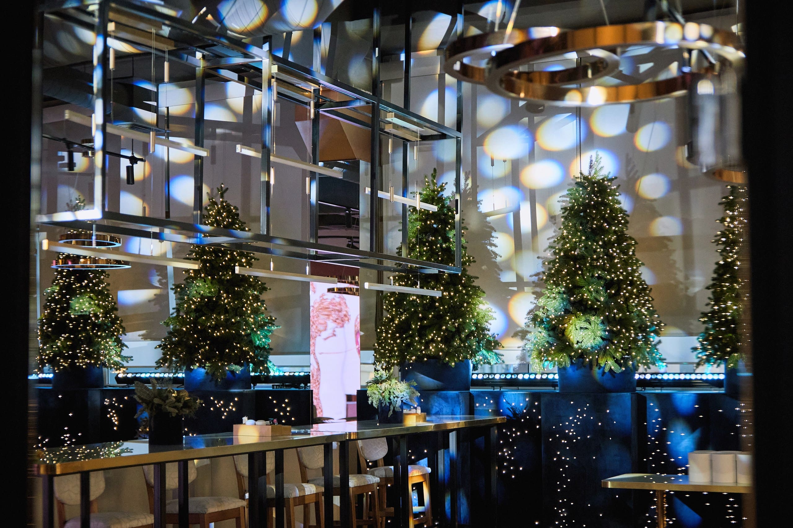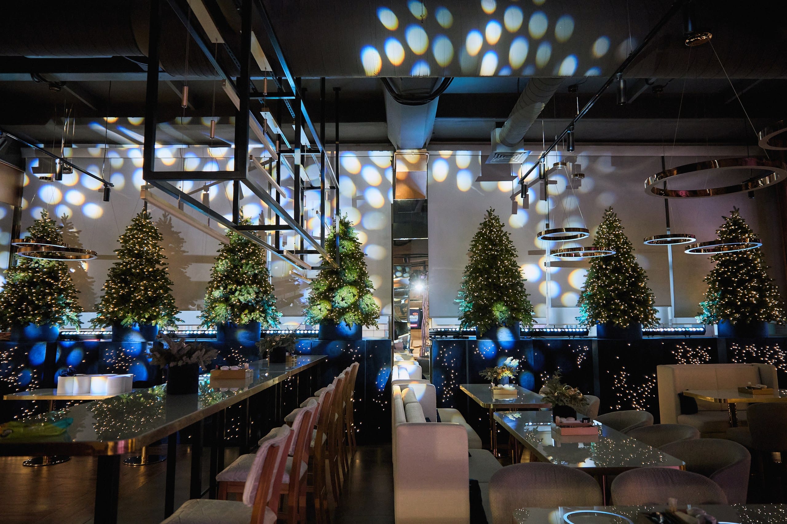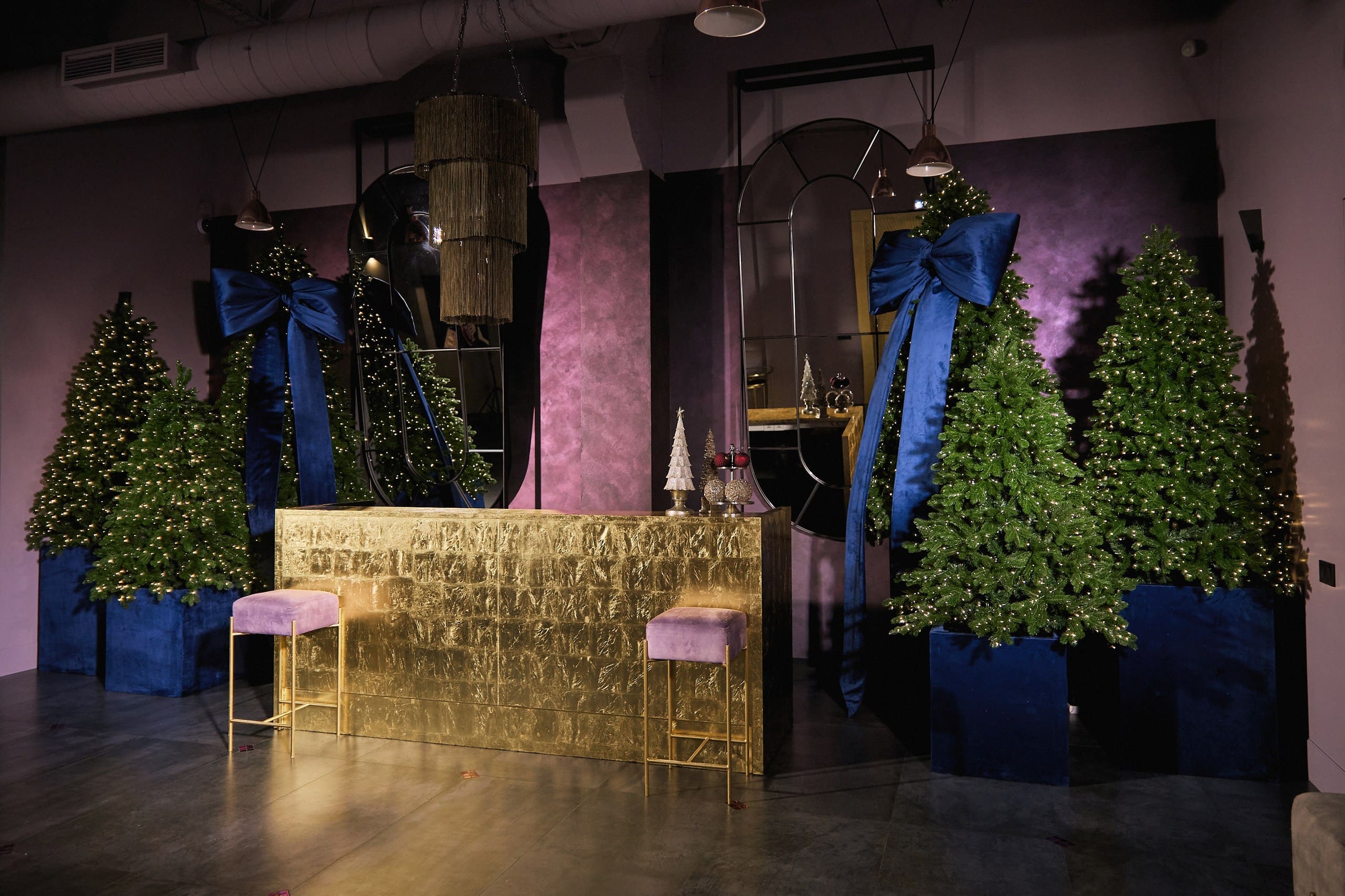 В основе декора - насыщенный темно-синий цвет, напоминающий безоблачное ночное небо. Этот глубокий оттенок служит фоном, на котором сияют золотые звезды, а также тонко прорисованные созвездия, выполненные с ювелирной точностью. Такой декор создает утонченную, мечтательную атмосферу, в которой ощущается не только праздник, но и глубокое спокойствие зимней ночи.